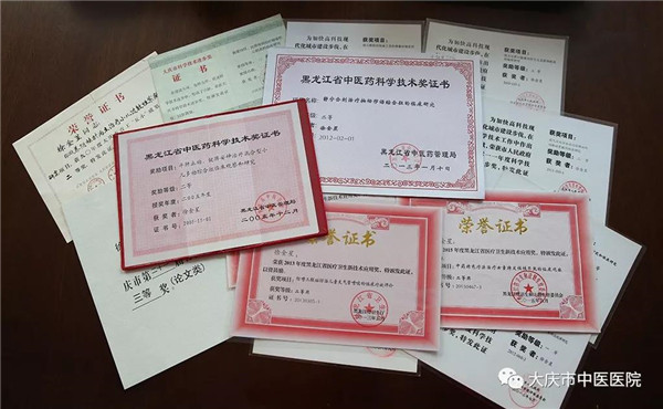 科室成立以来,先后获得国家中医重点专科、市级重点学科带头人梯队、黑龙江省职工职业道德建设“先进班组”、市级医学重点专科、三八红旗集体、女职工建功立业标兵岗、工人先锋号、创新示范岗、全市美丽女职工集体、青年文明号等荣誉称号。