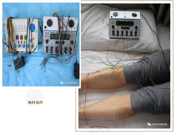 电针治疗:针刺华佗夹脊穴及下肢穴位,进针得气后,连接电麻仪。适用于对脑梗塞后遗症、脑出血后遗症、椎基底动脉供血不足、血管神经性头痛等疾病的治疗。