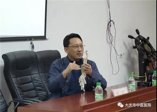市中医医院副院长王军首先作了《颈椎病的康复与保健》的科普讲座,为大家详细讲解了颈椎病的发病机制、临床表现;生活中如何避免颈椎病发作和如何进行简易治疗,并传授大家如何正确进行保健按摩;牵伸颈部周围肌肉、核心肌肉的激活训练;演示了传统养生功法八段锦的基本动作。